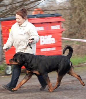 Arthur is such a handsome boy, he is an absolute delight to live with. He is a substantial male with very good size and is well off for bone, his head is to die for with a good broad muzzle and width of skull - which will only get better as he matures. Like all boys though he needs time to mature so he has taken a back seat in the ring but will make the odd appearance to get him used to the shows. He can be naughty but not often and he loves to show you his toys, and bones - infact he goes all silly when he has a bone and tries to give it to you lol.. I think his only bad vice is that he loves to be a lap dog and at 53kg it can be a bit difficult. I love this dog to bits and loved watching him as a pup and now as a youngster and I really look forward to see how he will turn out.